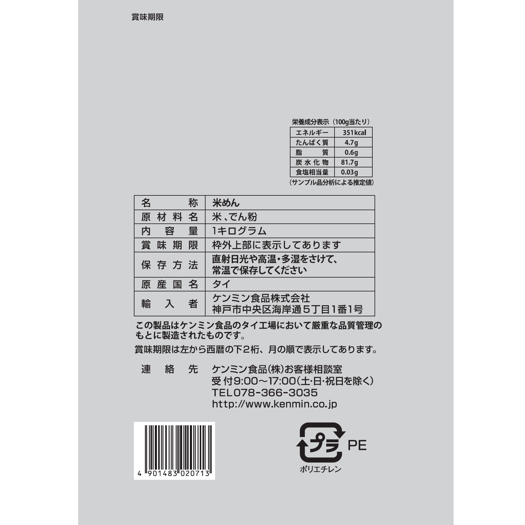 輸入者 | ケンミン食品株式会社 神戸市中央区海岸通5丁目1番1号 |