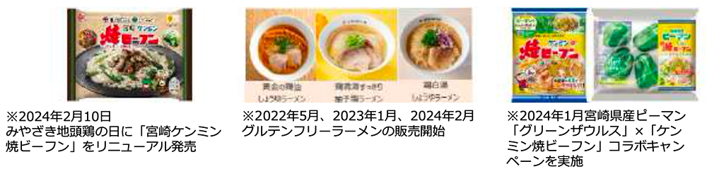 ①2021年よりみやざき地頭鶏、ビタミンピーマン等を使用した「宮崎ケンミン焼ビーフン」を開発・販売(現在も期間限定販売)。
