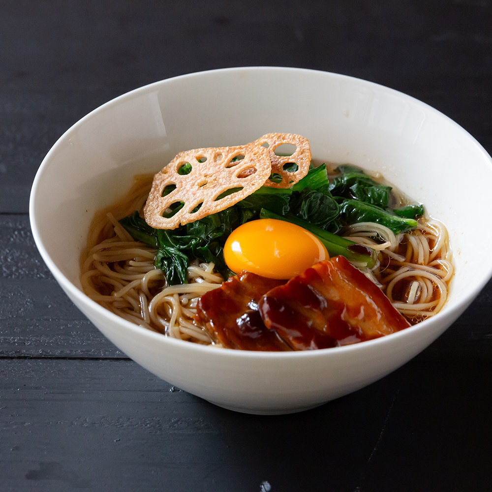 カリカリに揚げたれんこんとビーフンの食感をお楽しみください。 -