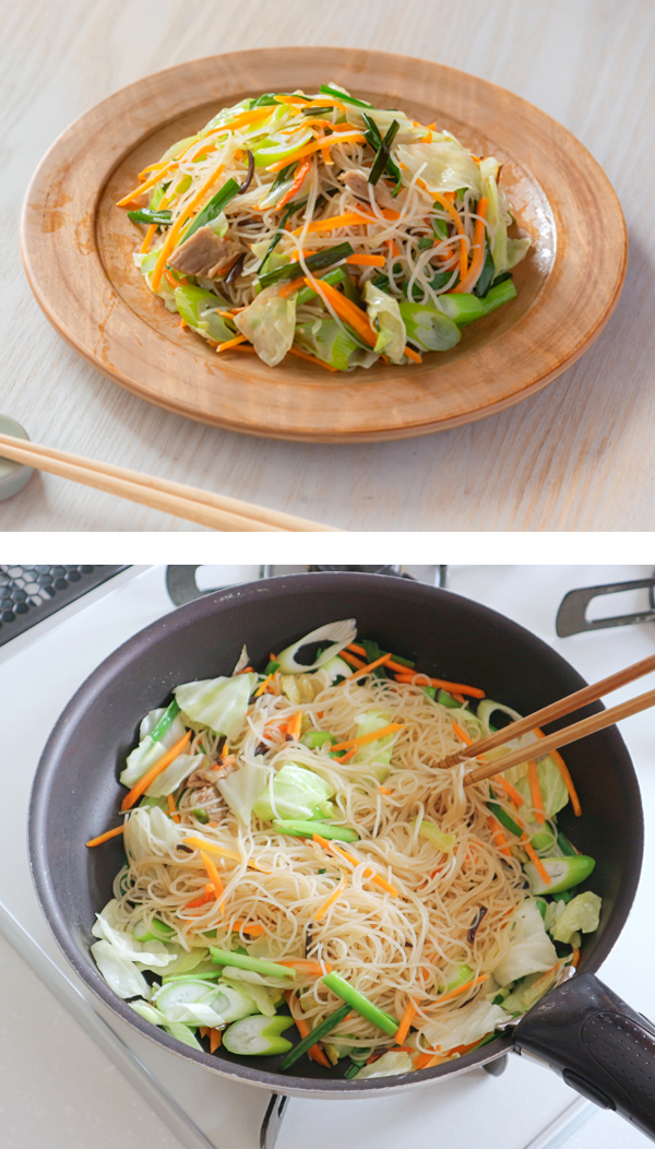 深みのある旨みを味わえる焼ビーフンに仕上がります。