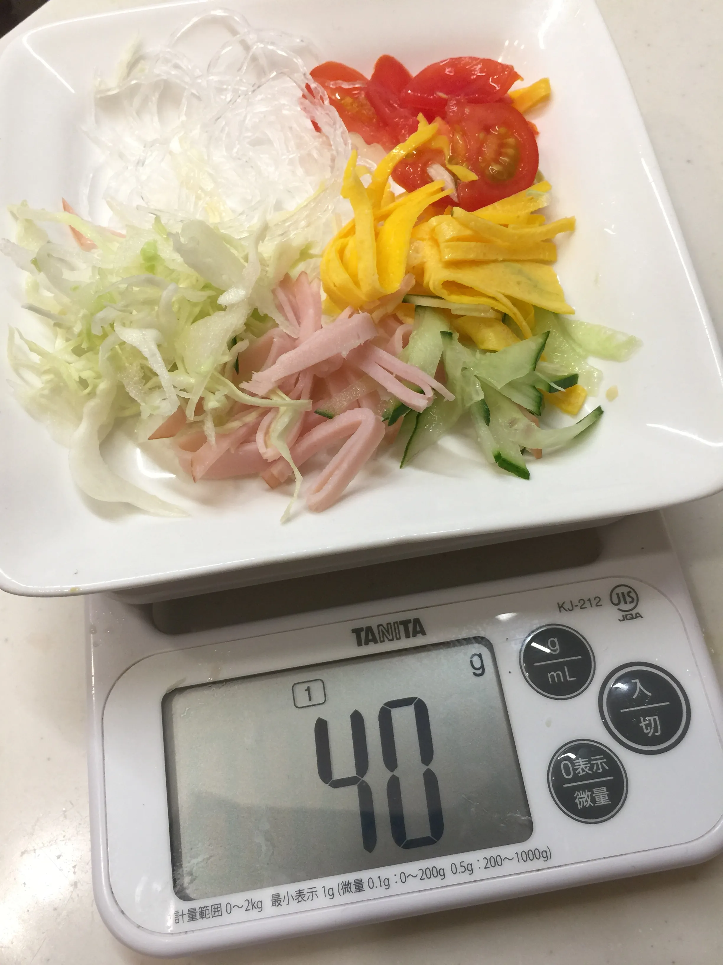 (下から、ライスペーパー →お雛様たち→ハムきゅうりという順に重なっている状態)