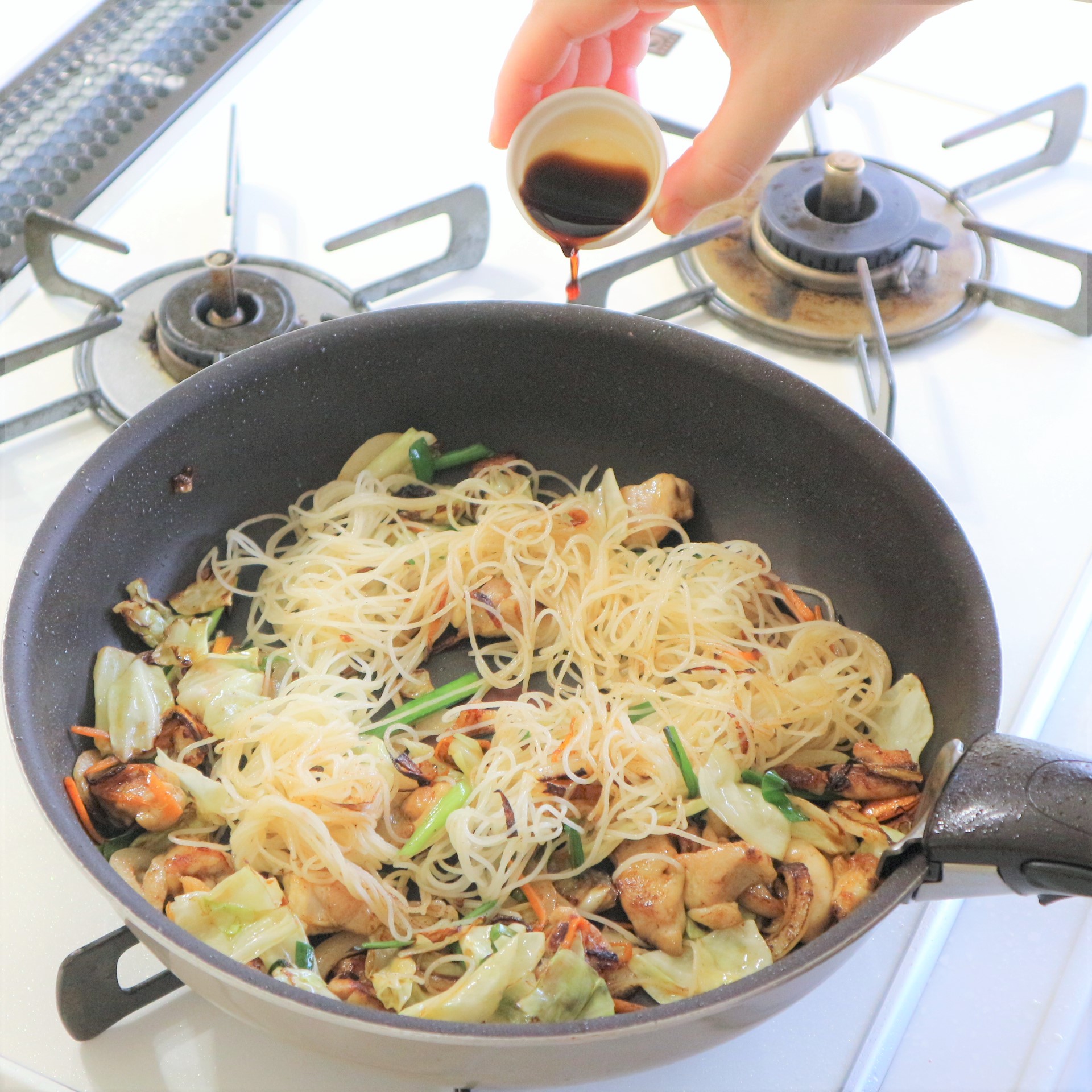 ミックスマサラを使って、簡単にカレー味のネパール風焼ビーフンが完成!
