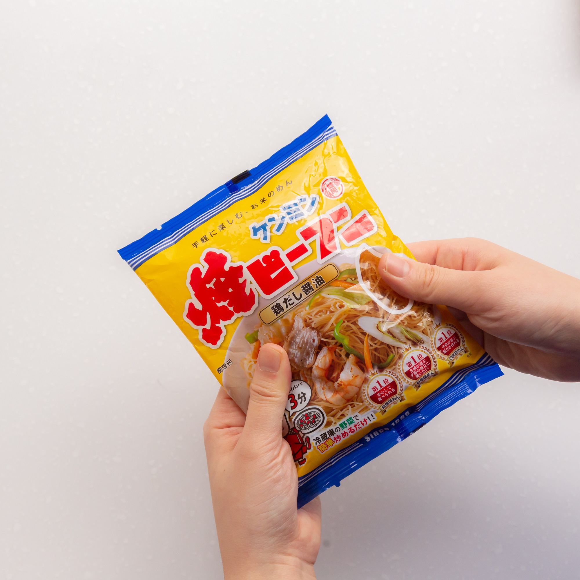 ケンミン焼ビーフンをチヂミのように焼くと、外はカリカリ、中はもっちり食感になります!残った焼ビーフンのアレンジとしても使えるレシピです♪めんに味がついているケンミン焼ビーフンだからできる、調味料なしでも味が決まる簡単メニューです。