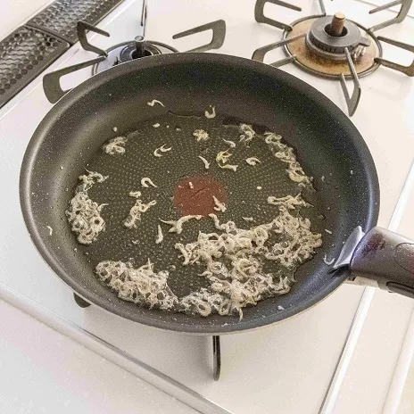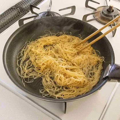 香ばしく炒めたカリカリのじゃこと旨みたっぷりの焼ビーフンに、大葉の爽やかさをプラスして、後引く美味しさに仕上げました。