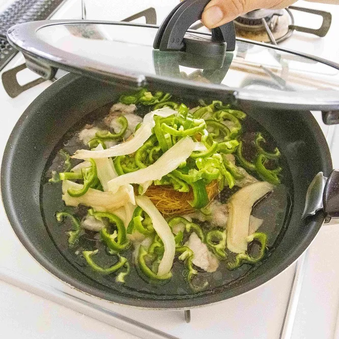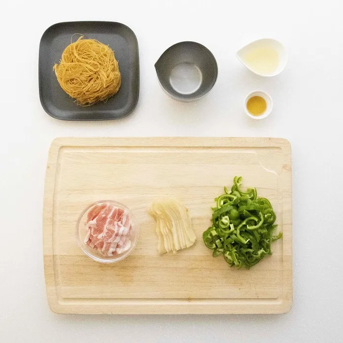 香り高いパリっと食感の新生姜とシャキッとしたピーマンが主役の焼ビーフン。