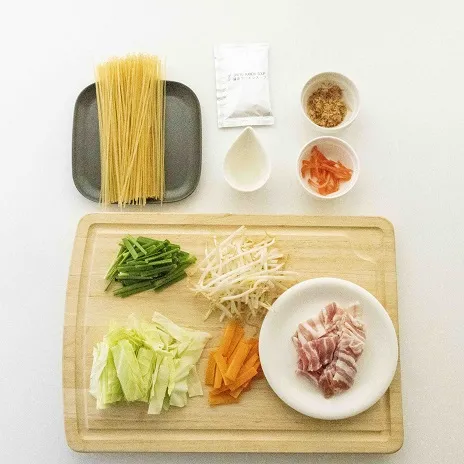 グルテンフリー醤油ラーメンの添付スープにはオイルも含まれているので、肉・野菜を炒める際、油は少量で十分です。