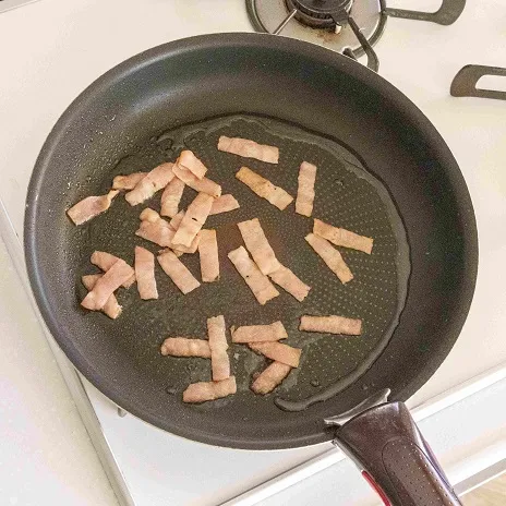 フライパンに油(大さじ1/2)を熱し、ベーコンを炒める。