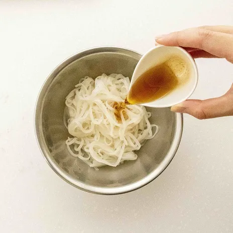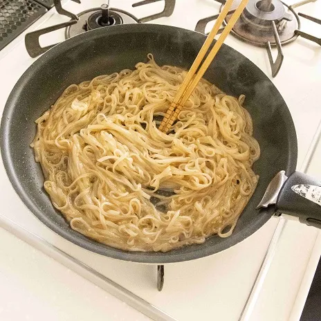 フォーにごま油を和えることでべたつきやダマになりにくくなります。