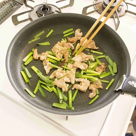 フライパンで簡単!甘辛 豚ニラフォー炒め_作り方