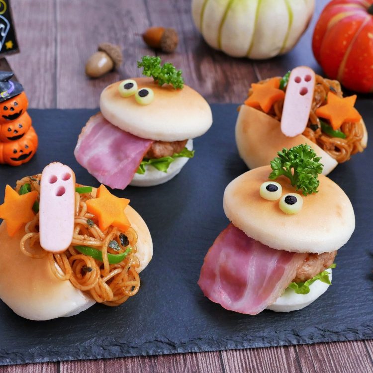 食物アレルギー対応 ハロウィン焼きそばパン&おばけバーガー
